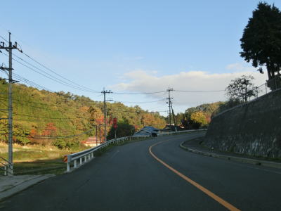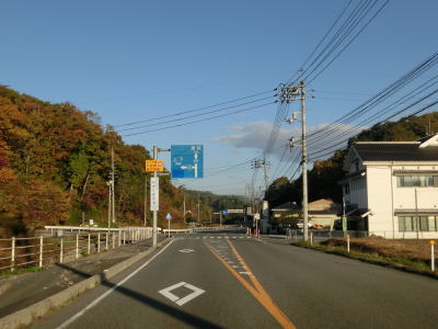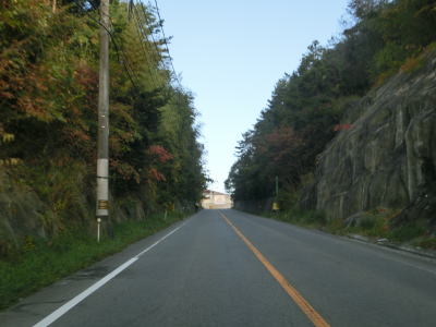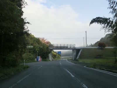 | 油木高校入口交差点からは上り勾配となり、緩やかなカーブをいくつか曲がりながら2車線道路を走る。その後勾配を下っていると町道(?)らしき道路をボックスカルバートで通過してからは上り勾配となる。広域農道(?)の跨道橋をくぐってから緩やかな勾配を下っていると旧道らしき町道との交差点を通過する。 | ||
