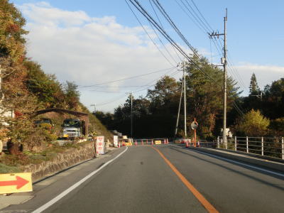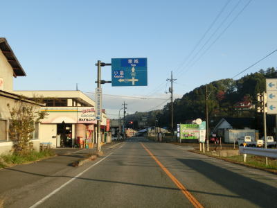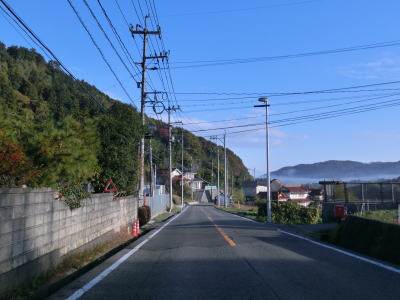 | 前方に家屋が見えてきた所で小田川に架かる明治橋を渡って左の急カーブを曲がる。下井関集落を過ぎると上り勾配となり、小田川沿いの市道との交差点からは川から離れてしまう。 | ||