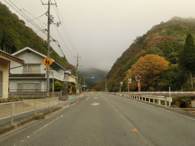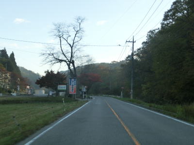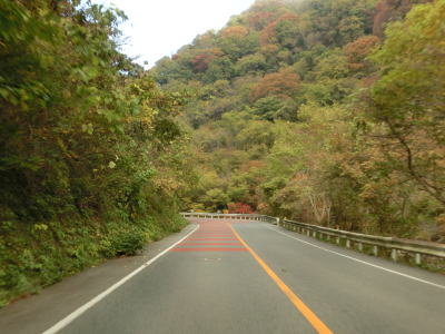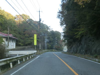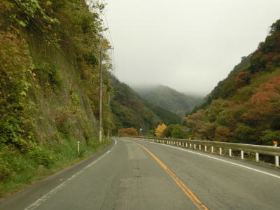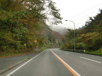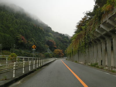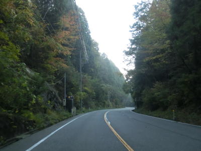 | 川に沿っておりカーブが多く、急カーブには赤いペイントが施されている。沿線に人家はないが人里離れた場所ではない。にもかかわらず交通量は非常に少なく走りやすい状態である。視界が開けて狭い谷筋を脱すると工場の前を通る。 | ||