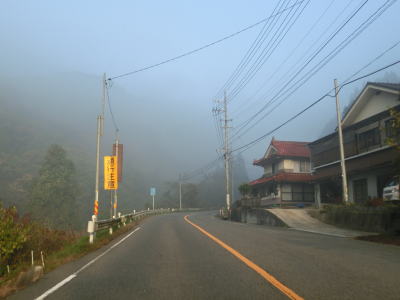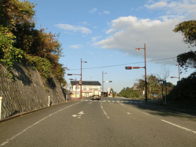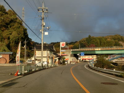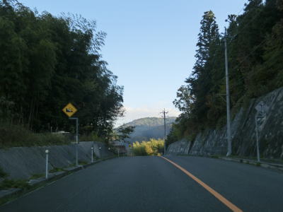 | 上井関交差点からは長い下り勾配が続いている。大きく右にカーブした先で学校食堂の前を通る。その名が示す通り井関小学校跡を利用した食堂である。森僧集落を過ぎると9%の勾配を下る。実際に走ってみるとそこまで急な勾配には思えなかったが、南向き車線には登坂車線が設置されている。 | ||