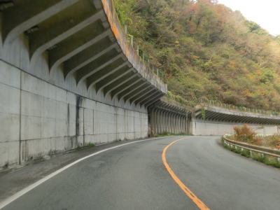 | 93.成羽川沿いを快走 | 94.巨大な岩(?)がある | 95.ロックシェッドあり |