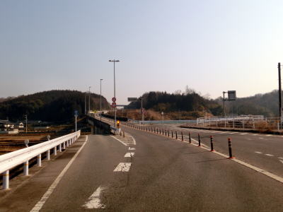 | 平子国道踏切からは西城川沿いを走り、左にカーブして大正大橋を渡って右岸に移り、右にカーブして大富大橋を渡って左岸に戻る。大富大橋を渡った直後に左急カーブを曲がり、その先で広島r26交差点を通過し、以降も西城川の左岸を快走する。沿線の家屋は少なくなってくるが、開けた谷筋のため雰囲気は明るい。 | ||