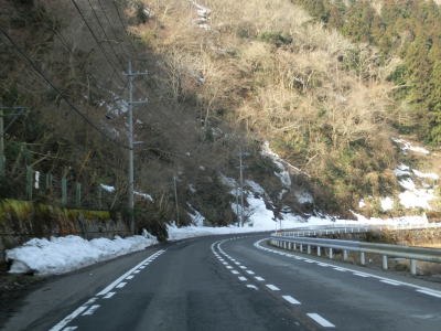 | 148.急カーブが多い | 149.路肩や斜面には雪が残っている | 150.中部電力の落合発電所 |