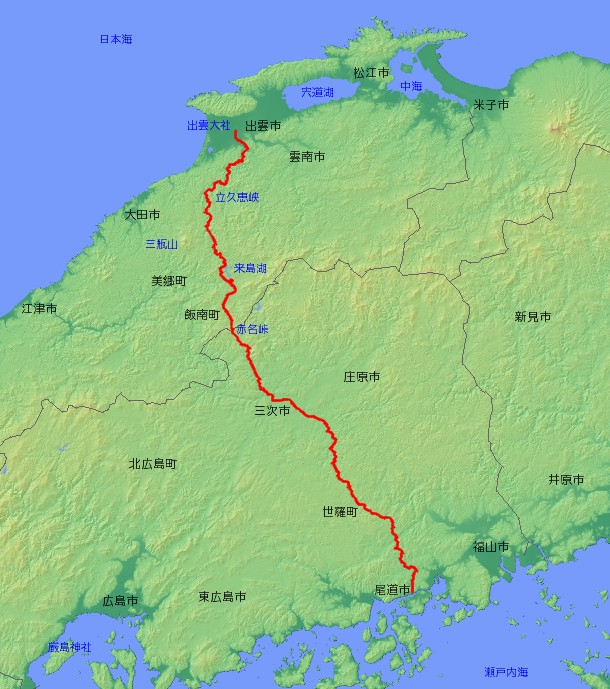 | 主な経由地 | 島根県出雲市〜飯南町〜 〜広島県三次市〜世羅町〜尾道市 |