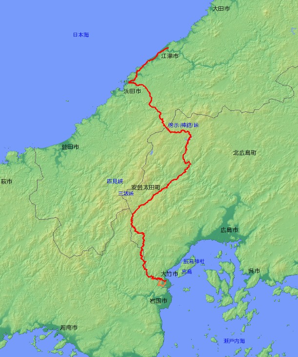 | 主な経由地 | 島根県江津市〜浜田市〜 〜広島県安芸太田町〜廿日市市〜大竹市 |
