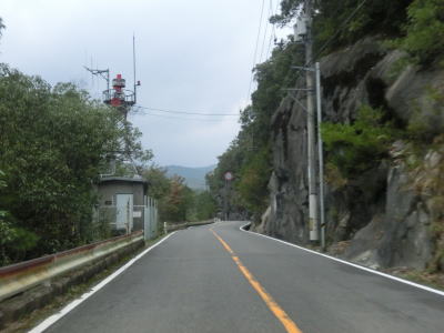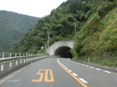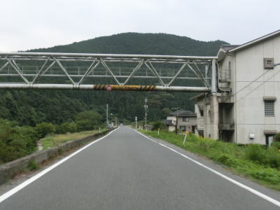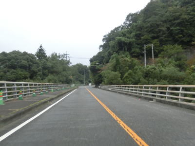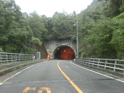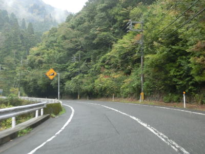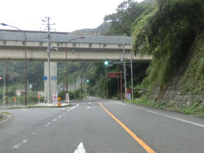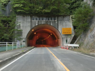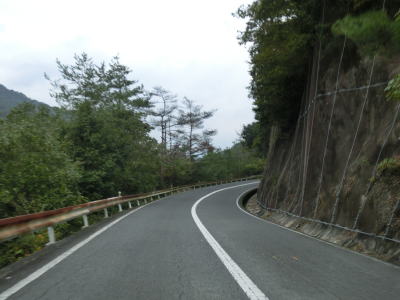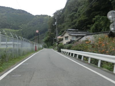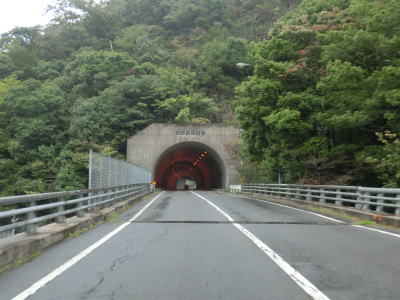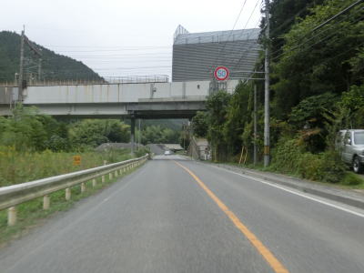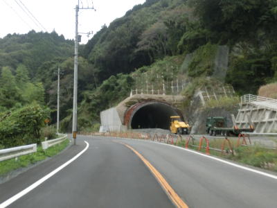 | 小瀬川に沿って走っていると左にカーブするが、建設中の防鹿トンネルの脇を通過する。トンネル坑口を過ぎるとセンターラインがなくなり1.5車線幅になってしまう。防鹿集落の川寄りの堤防上を走っていると大きく右にカーブして上水道施設の横を通過する。狭路区間はこの上水道までで、防鹿トンネルの供用が開始されればパスできる区間である。 | ||