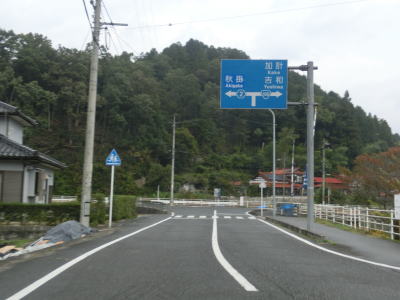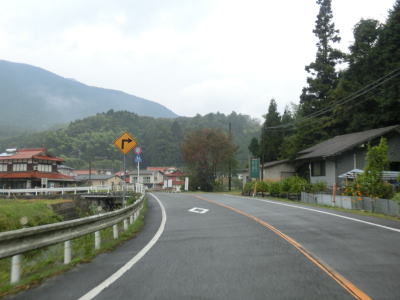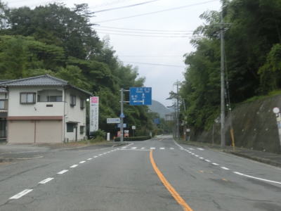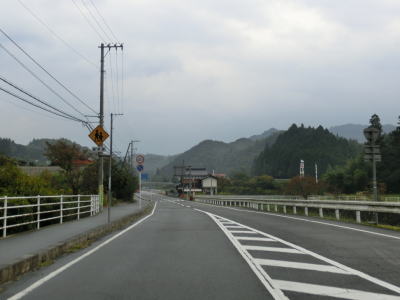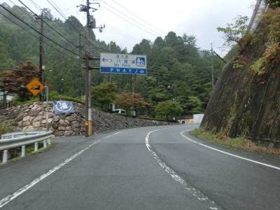 | 飯山集落からもカーブの多い上り勾配の2車線道路を走り、右にカーブしながらR434との交差点を通過する。信号機がない交差点で案内標識がなければ国道が交差しているように見えない。この交差点からはR434が重複しているのだが、その事を示す標識等は存在しない。 | ||