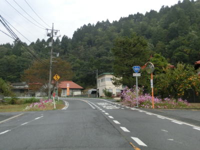 | 冷川流域の集落の中を走り抜けているが、勾配もカーブも緩やかで交通量が少なく非常に走りやすい。冷川の源流付近で集落が途切れて若干勾配が急になるが、車であればあまり気にならない程度である。緩やかな勾配を下っていると前方に川が見えてくるが、一時的に離れていた小瀬川である。その小瀬川の右岸を走っていると広島r30との交差点を通過する。 | ||