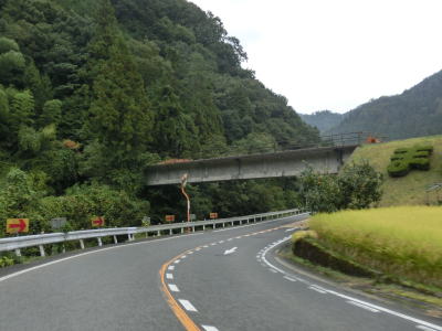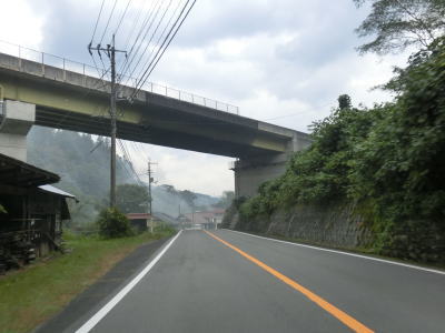 | 坂原集落を通り過ぎると並走している中国道の下をくぐり、少しだけ並走した後に再びその下を通過する。筒賀川に沿ってカーブの多い状態を走っていると筒賀川を渡って右にカーブして中国道をくぐり、さらにもう1回くぐる。 | ||