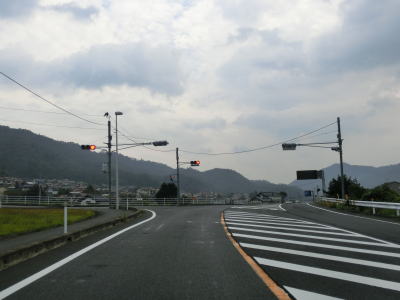| 中国道の上下線の間にある萩原集落を通過して上り線の橋梁の下をくぐるが、それが最後の交差箇所である。中国道との交差箇所区間を出てすぐに広島r303との交差点を通過する。r303と筒賀川を挟むように並走しながら沿線の家屋が多い2車線道路を走る。交通量は少ないが家屋が密集している場所はやや走りにくく感じる。 | ||