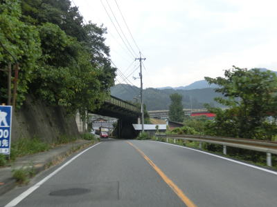 | 木坂集落を通り過ぎると斜めに通過するJR可部線のガードを通過する。その先で直角に横切る高架があるが、これは可部線でも中国道でもなくR191の加計大橋である。加計大橋の下から左にカーブして旧加計町の中心部に差し掛かる。 | ||