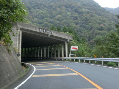 | 滝山洞門を出てからも長短のロックシェッドが続いている。シェッド内も2車線だが大型車同士の離合は少々厳しいかもしれない。消えかけのセンターラインの2車線道路を走っていると王泊隧道を通過してから左にカーブして新王泊橋を渡る。橋の手前を右折すれば王泊ダムに着く。 | ||