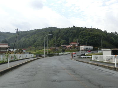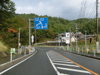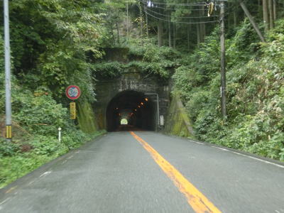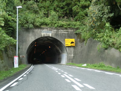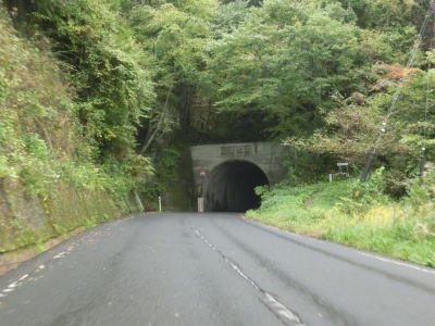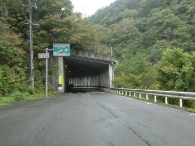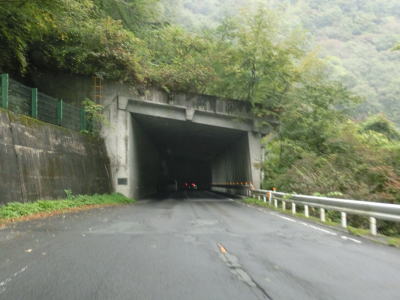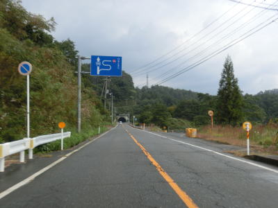 | 深笹下集落で周布川の対岸に比較的新しいと思われる橋梁が見えるが、これはR186のバイパスではなく金城三隅基幹林道である。日本海沿岸を走るR9とを結ぶ林道だが、走行日時点では全線開通に至っていない。 その後も谷筋を走り周布川を離れてから犬戻トンネルをくぐる。トンネルを出ると新小国橋を渡るが、左側に旧道が見える。交差点は閉鎖されていないが、トンネルの北の橋が落とされているため通り抜ける事ができない。 |