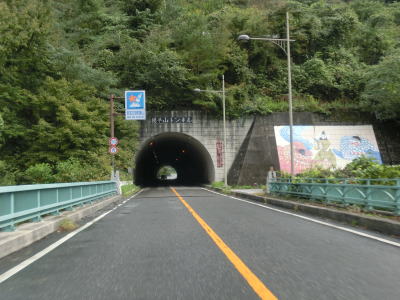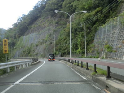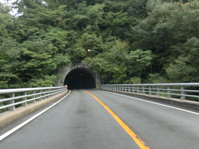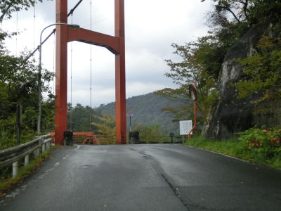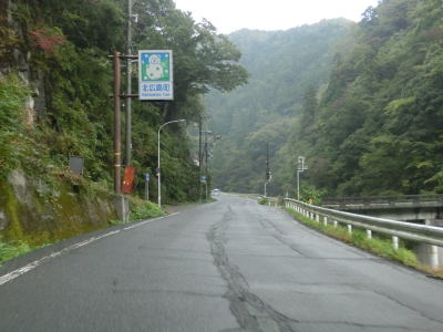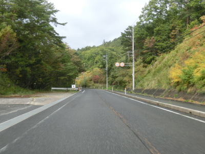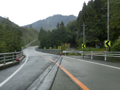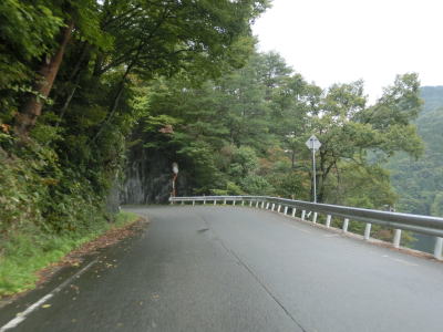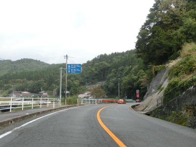 | 温井集落を通り過ぎると右にカーブしている大箒山トンネルを通過し、滝山峡大橋で龍姫湖の北端近くを渡って榎平山トンネルをくぐる。猪山展望台に至る町道(林道?)との交差点を通過して熊ヶ谷トンネルをくぐり、その次に六反原トンネルをくぐる。長い上り勾配が続いているが、交通量が少ないためさほど走りにくさは感じない。 | ||