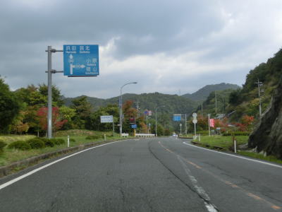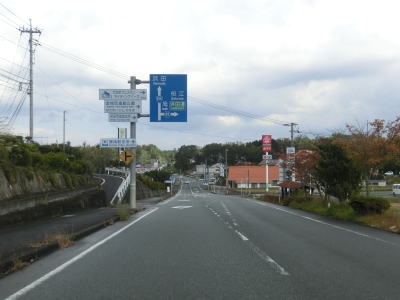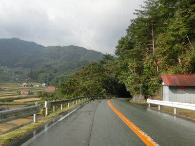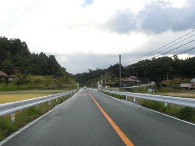 | 島根r52との短い重複区間が終わってからも道路状況は特に変わらず谷筋の2車線道路を走る。那賀西部広域農道との交差点付近から開けた谷筋となり田畑の多い集落を通り抜ける。交通量は多少増えているが流れが悪くなるほどではない。 | ||
