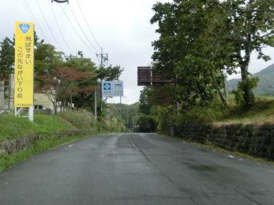| 半場山の山裾を走るようになってからは急カーブがなくなり西側が開けた場所に出る。島根r115交差点付近まで来ると集落との高低差がなくなりほぼ平坦な状態になる。周布川に沿って直線的な2車線道路を走る。集落が途切れると谷筋を走るようになるが、快走できる道路状況である点に変化はない。 | ||