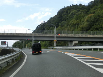 | 登坂車線が終わると大峠トンネルをくぐって下り勾配を走る。トンネルから少し離れた島根r5付近には南向き車線い登坂車線がある。r5交差点を過ぎて勾配を上っていると日扇トンネルをくぐる。 | ||
