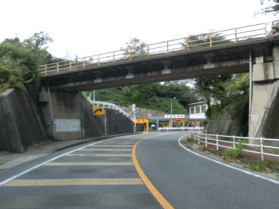 | 勾配を下り切って海面との高低差がなくなると島根r300交差点を通過するが、この交差点上に市境があるため以東は江津市である。島根r206との交差点の少し北までが海岸線沿い区間となっているが、右にカーブして勾配を上ると海から離れる。山陰本線の上を跨線橋で通過してから線路の東側を並走して北東の方角に進む。 | ||