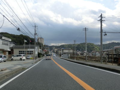 | 島根r5との交差点からも引き続き浜田市の市街地を走っており沿線の建物は多いが、狭いながらも歩道が設置されており決して走りにくい狭苦しさを感じる道路状況ではない。緩やかな左カーブを曲がりながら勾配を上ってから右にカーブしている今宮トンネルを通過する。トンネルを出てからも右カーブが続いており、JR山陰本線のガードの下を通過する。 | ||