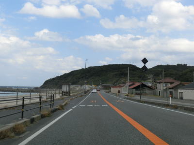 | 182.島根r300交差点からは江津市 | 183.海岸沿いを走る | 184.山陰本線を跨線橋で越える |