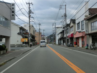 | 殿町交差点からはR9との重複区間となるが、一桁国道と言えども地方都市とあって対面2車線道路である。浜田市役所の北を通過し、鏡山の南麓で島根r208田町交差点を左斜め前方に進む。浅井川橋を渡ってすぐに右にカーブするが、この辺りから緩やかな上り勾配になっている。 | ||