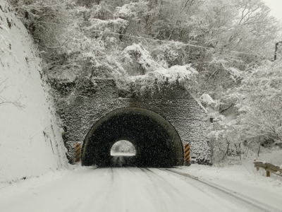 | 何ヶ所もの緩やかなカーブを通過しながら高津川の右岸を北上していると島根r12交差点を通過する。左カーブからは緩やかな勾配を上り、新坂折トンネルをくぐる。すぐ北に旧坂折隧道があるが、閉鎖されており通り抜ける事はできない。 | ||