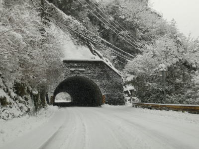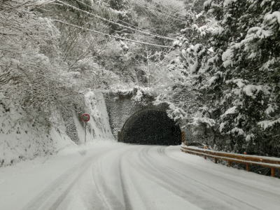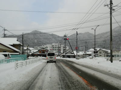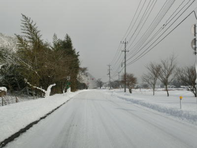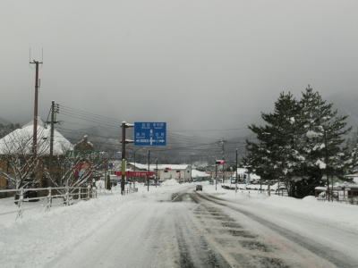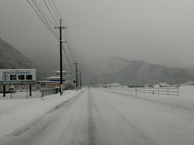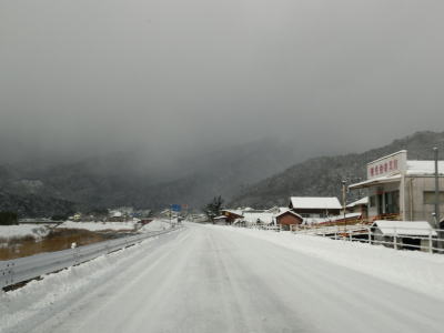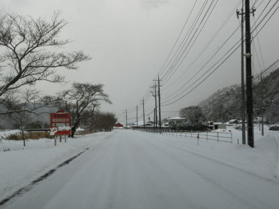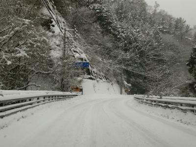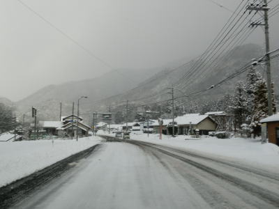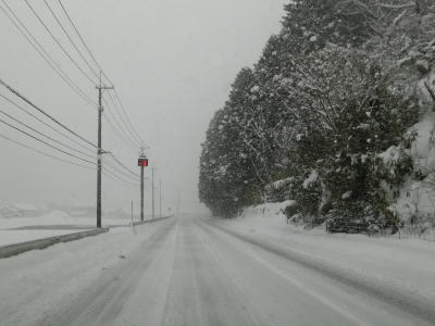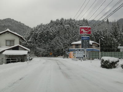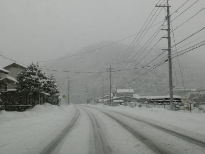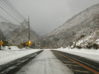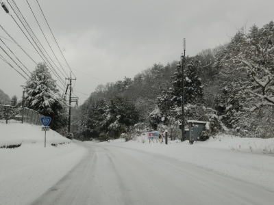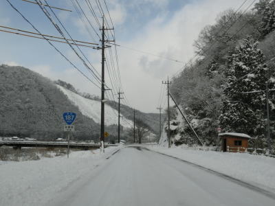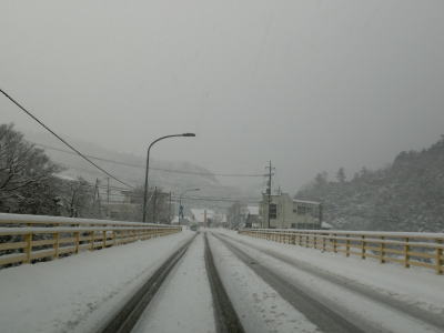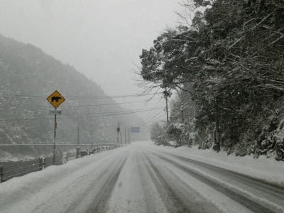 | 断続的に続く集落を繋いでおり家屋が途切れている場所もあるが、センターライン付きの2車線道路なので走りにくさは感じない。蛇行する高津川に沿っているものの急カーブは少ない。交通量も非常に少ないが、これは積雪しているせいか、普段からこの程度なのかは判断し難い。 | ||