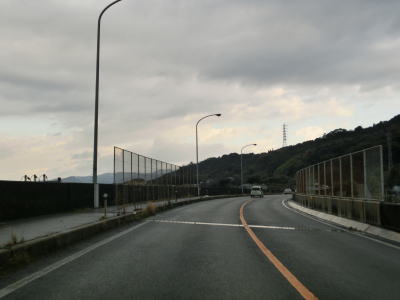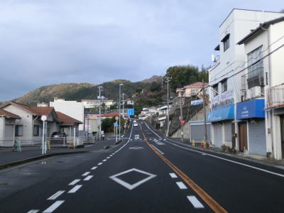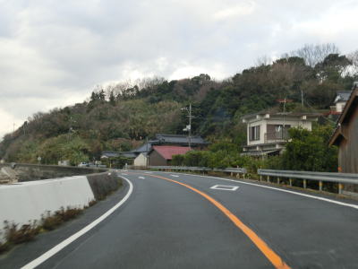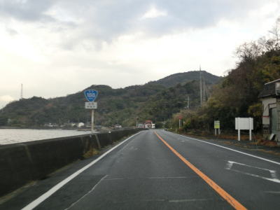 | やや急な右カーブを曲がっていると梶取岬を通過して光市に入る。光市に入ってからも道路状況に変化はなく海岸線に沿った2車線道路を淡々と走る。山が海に迫った場所であり平地が少ないため沿線の家屋も少ないが、山の中腹を走る市道沿いに集落が存在している。 | ||