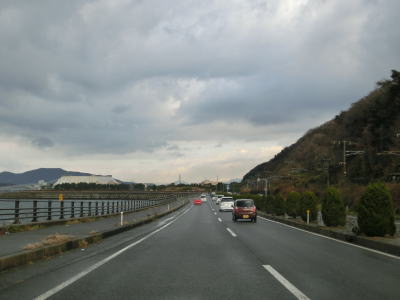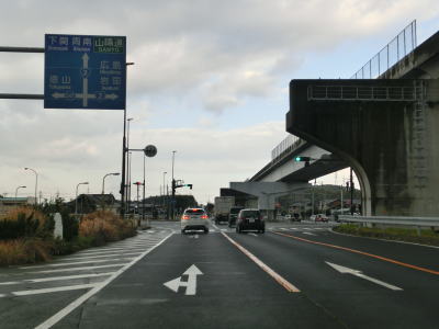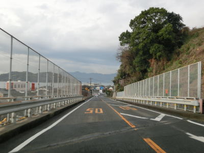 | 78.越波に注意 | 79.下松市に入る | 80.反対側車線の向こうにはJR山陽本線がある |