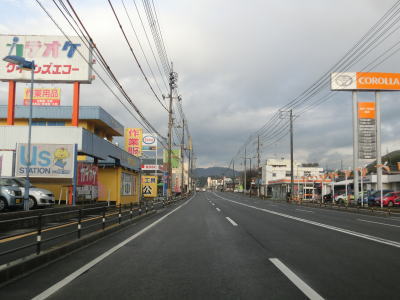 | 室積交差点からは4車線道路になる。ほぼ平坦でカーブがほとんどない走りやすい道路状況だが、右直兼用車線となっている交差点が多い。もっとも大阪のように路上駐車が多い訳ではないので左右の車線を行き来するような走り方にはならない。室積海岸に沿っているが海側にも家屋があるため海は見えない。海岸線から離れると沿線の商業施設が増えてくる。当然ながら交通量も増えてくる。 | ||