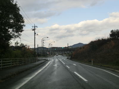 | 新八海橋を渡ると田布施町に入るが、道路状況や周辺の風景に特に変化はない。町の中心部からは離れた場所だが、海に近いせいか中規模の工場がいくつか存在している。町道との浜城交差点を通り過ぎると緩やかな上り勾配となり、砕石運搬用と思われるベルトコンベヤの下を通過する。 | ||