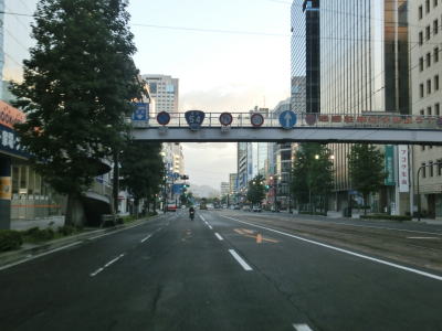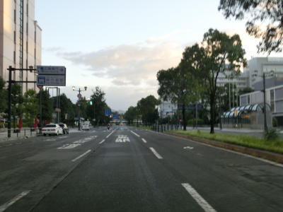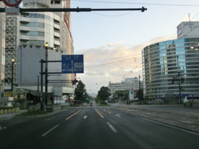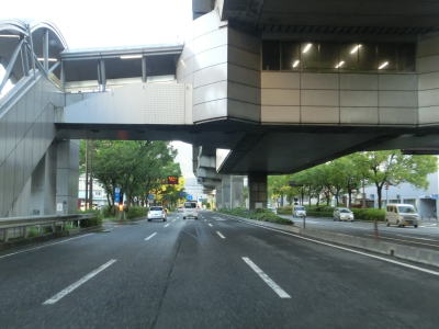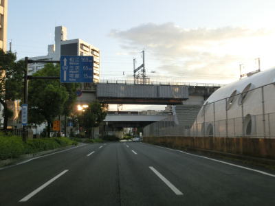 | 県立総合体育館前交差点からも片側2車線道路が続いており、交通量も非常に多い。広島城の西を通り過ぎると広島r84城北駅北交差点を通過する。城北駅はどこにあるのかと言うと、R191(とR54)の下を通っているアストラムラインの駅である。 城北駅北交差点からは中央分離帯が広くなるが、これはアストラムラインが地上に出てくるためである。山陽新幹線とJR山陽本線の高架の手前に白いドーム状の建物があるが、これはアストラムラインの新白島駅である。JRの高架を過ぎるとアストラムラインの高架が地上に出てくる。 |