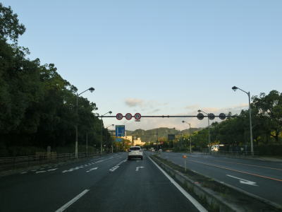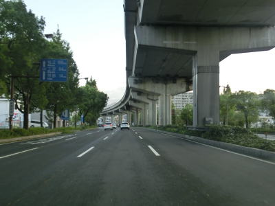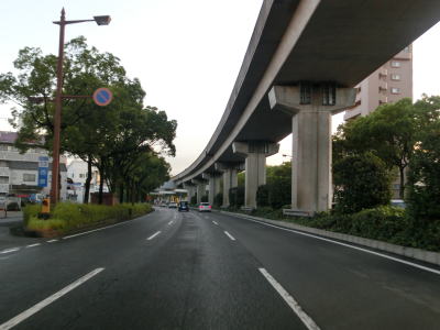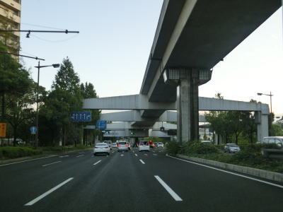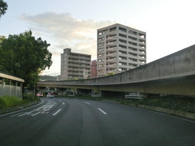 | 祇園新橋を渡り終えると緩やかな右カーブを曲がる。アストラムラインの祇園新橋北駅を通過し、アストラムライン(の橋脚)に分離された片側3車線道路を北上する。この区間も道路に面した建物はなく、副道を介して出入りする事になる。広島r152の現道との交差点を通過した直後にバイパスとの西原駅南交差点を通過する。西原駅の下を過ぎると緩やかな勾配を上って昭和橋を渡る。 | ||
