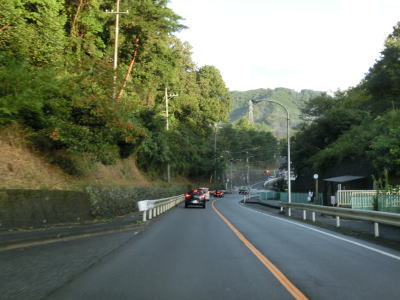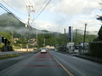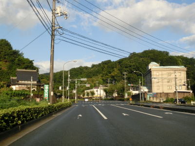 | 安佐北区民文化センター入口交差点からは対面2車線道路となり多くの建物が建ち並ぶ間を走る。交差点は多くないのだが右折車線は設置されておらず、また緩やかながら距離の長い上り勾配のせいもあって車の流れはあまり良くない。反対方向は安佐北区民文化センター入口交差点を先頭に渋滞しやすい。虹山団地西入口交差点では道路工事が行われていたが、おそらく拡幅と右折車線の設置かと思われる。東向き車線は右折する車両も多く渋滞しやすい構造である。 沿線の家屋が少なくなってきて安佐北区民文化センター入口交差点から約3.5kmで遠坂峠を越えて下り勾配になる。峠の標高は120〜130mとさほど高くなく、南には造成された住宅地が広がっている。 |