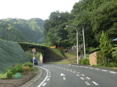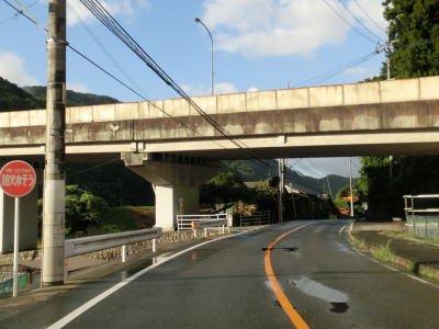 | 観音トンネルを出た後の左カーブを曲がっていると湯来町という町境標識の脇を通る。これは安芸太田町湯来町ではなく広島市佐伯区湯来町を指している。平成の大合併以前は湯来町として独立した自治体だったので、2005年の合併以降も境標識は撤去も修正もされずに残っている。湯来町に属していた宇佐集落の南端でJR可部線跡のガードをくぐるが、その直前で安芸太田町に入る。こちらには境標識が設置されていないが、合併以前から設置されてないのだと思われる。 | ||