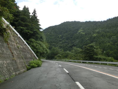 | 旧道との交差点を過ぎると8%と急勾配区間に入り、程なくして登坂車線が現れる。登坂車線が始まってすぐに左後方に延びる道路があるが、これは虫木峠に向かう旧道である。虫木トンネルは1986年に開通しており旧道は小崩落しているなど車両では通り抜けられないようである。 | ||