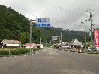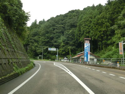 | 左にカーブして勾配を少し下ると島根r34交差点を通過し、そのすぐ先で道の駅「サンエイト美都」を通過する。「匹見峡」に比べると駐車台数は多いが、小規模と言える道の駅である。r34交差点からは上り勾配となっており、程なくして笹ヶ峠を越えて下りに転ずる。 | ||