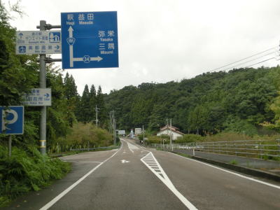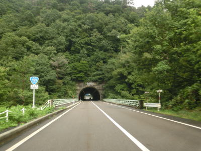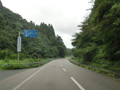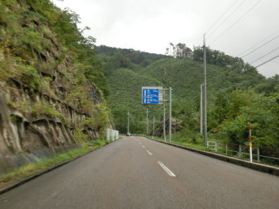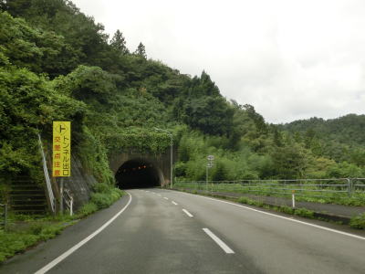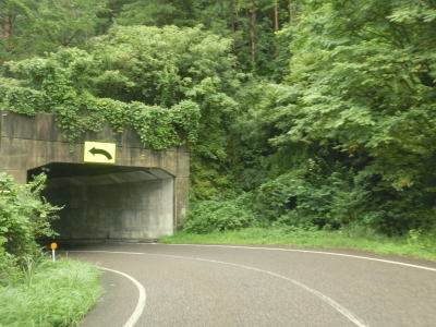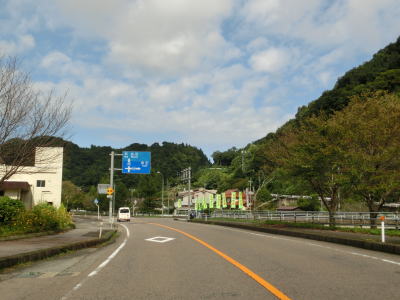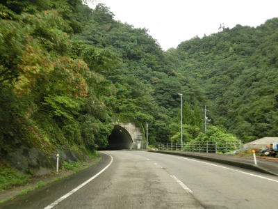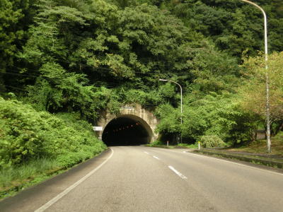 | 下都茂橋と仙道橋の間で仙道トンネルを通るが、この旧道は沿線に家屋があるため閉鎖されていない。仙道トンネルからは比較的開けた場所を走っており、益田川の左岸を少し走る島根r309交差点を通過する。益田川から離れて緩やかな勾配を上っていると朝倉トンネルをくぐる。 | ||
