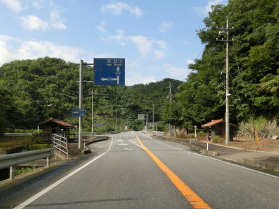 | 島根r172からは緩やかな勾配を上り山料トンネルをくぐる。蛇行する益田川の左岸をカーブの少ない2車線道路で走っていると清水トンネルと下都茂トンネルを通過する。どのトンネルにも川沿いの旧道があるが、閉鎖されているもしくは廃道に近い状態になっており車両での通行はできない。 | ||