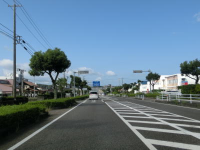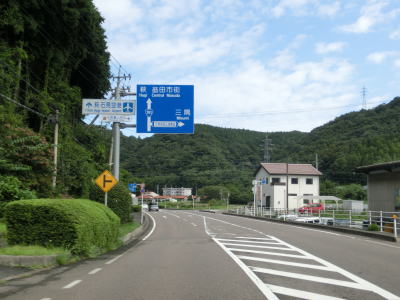 | 津和野方面の西石見広域農道との交差点を通過して少し走ると今度は三隅方面の西石見広域農道との交差点を通過する。三隅方面は広域農道で行く事が可能だが、津和野方面は益田市街地をパスしてR9に行ける程度である。広域農道との短い重複区間を終えた後は益田川の左岸を走り、島根r54交差点を通過する。益田市の市街地は左折のr54に案内されており、左折する車両も多い。 | ||