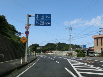| 笹ヶ峠を越えた先の案内標識によると下関まで186kmもある事がわかる。下関市までR9を走れば170km程度の距離のため、186kmという数字はR191を走った場合の距離の可能性がある。舟木谷橋と堀越橋を相次いで渡った後に左にカーブしている丸茂トンネルを通過する。トンネルを出ると旧道らしき道との交差点を通過して緩やかな勾配を下る。平坦になって景色が開けた所で丸茂集落を通り過ぎる。 | ||