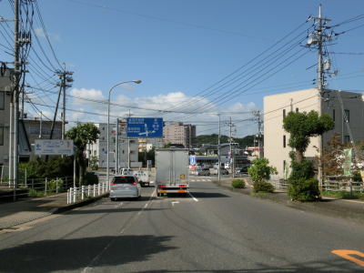 | 島根r54交差点からは上り勾配となり、野坂橋の先で益田トンネルに入る。トンネルを出ると島根r171の現道が交差している左カーブを曲がる。さらに進んで右にカーブした所でr171バイパスとの交差点を通過する。r171バイパスとの交差点からは平坦な直線道路を走る。センターラインにはゼブラゾーンが付加されており道幅に余裕のある2車線道路だが、益田市の市街地に近付いているため交通量は多い。 | ||