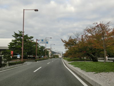 | 309.JR山陰本線をオーバーパス | 310.歩道設置工事のため片側交互通行規制中 | 311.左側にはJR山陰本線が隣接並走 |
