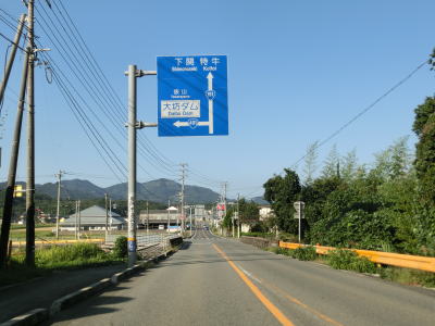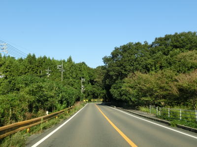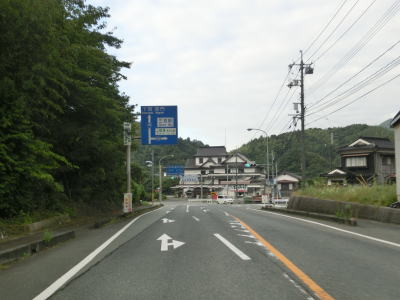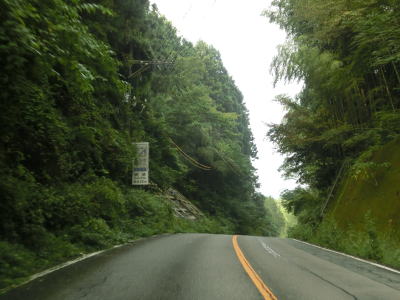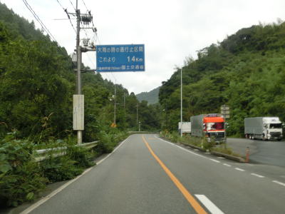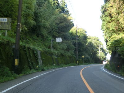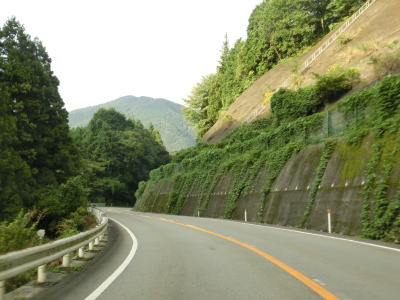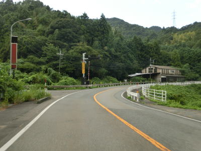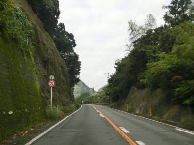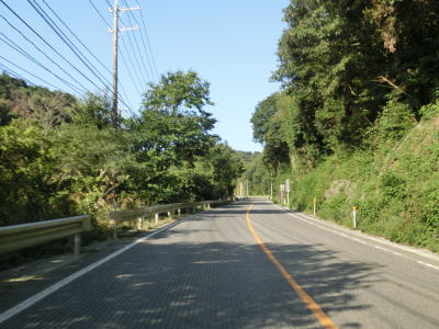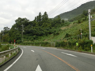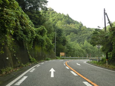 | カーブの多い上り勾配の2車線道路を走っていると中拍子隧道をくぐり、出た直後に左の直角カーブを曲がる。その後は追分川の右岸の山の斜面を下っていると視界が開けて追分集落が見えてくる。 | ||