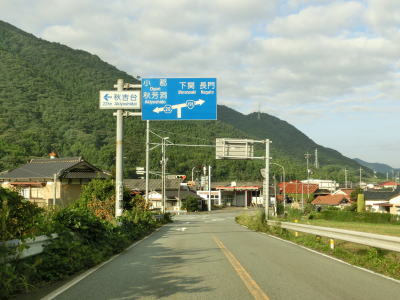 | 椎の木峠からの勾配を下っていると景色が開けた直後に山口r286交差点を通過する。r286はR191の南を走っているが、北にある川尻岬が案内されている。r286交差点からは豚旅集落が途切れた山間部を走っておりアップダウンはともかくカーブはややきついものもある。山間部を出ると勾配もカーブもほとんどなくなる。旧日置町の町役場の東で山口r281交差点を通過し、左にカーブした後にr281古市交差点を通過する。古市交差点を右折すれば長門古市駅に至る。 | ||