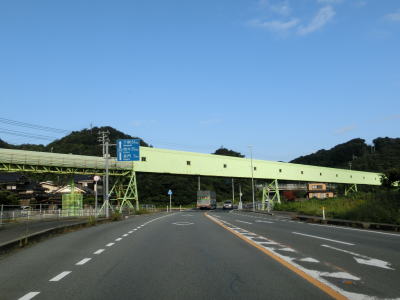 | 仙崎交差点からは上り勾配となり、右カーブを曲がりながら住友大阪セメントのベルトコンベヤの下を通過する。鉱山と港を結ぶベルトコンベヤの全長は16kmもあると言う。その後も上り勾配が続いており、程なくして山口r282の小浜跨線橋の下をくぐる。跨線橋という事からも分かるとおり、右側にはJR山陰本線が並走している。玉江跨線橋からここまでの山陰本線は内陸を走るR191とは異なり海沿いを通ってきている。山間部を出て景色が開けると長門市の市街地に近付くため、沿線の建物が増えてくる。 | ||