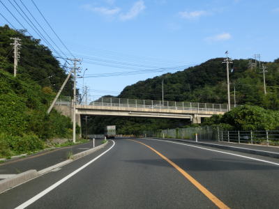 | 318.長門市日置上 | 319.指定区間ではないためガードレールが黄色い | 320.北浦広域農道の跨道橋が横切る |