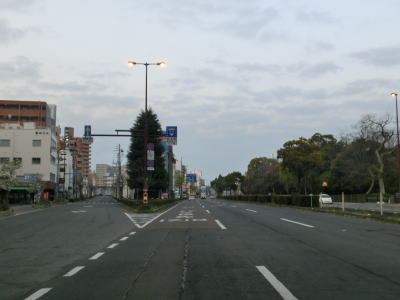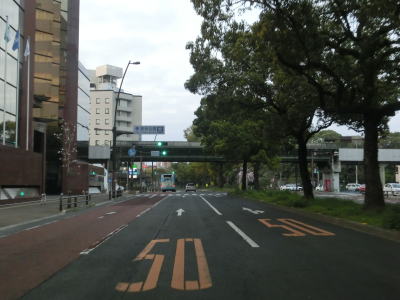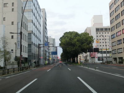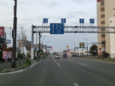 | 上天神町交差点からは片側2車線道路を南下する。沿線には高層の建物はないが商業施設が多く、昼間であれば交通量が多いであろう事は容易に想像できる。香川r171鹿角町交差点を通過してから程なくして香川r147交差点を通過するが、このr147は2010年以降に造られたバイパスとの交差点である。 | ||