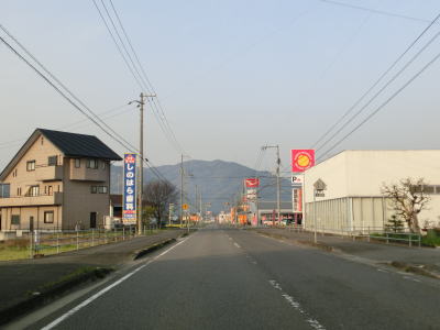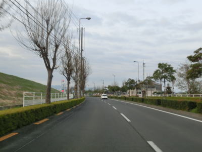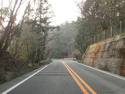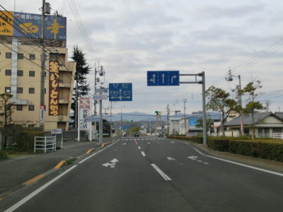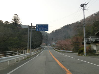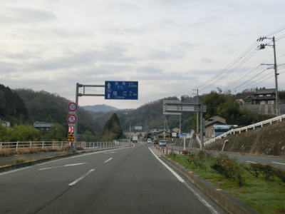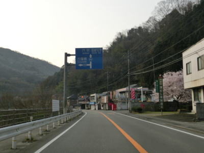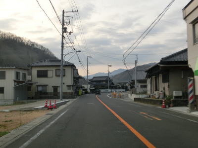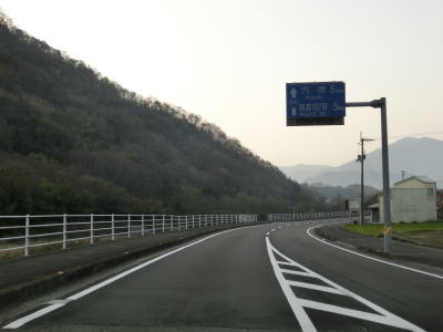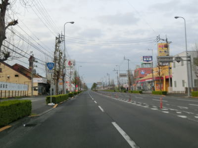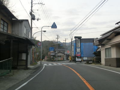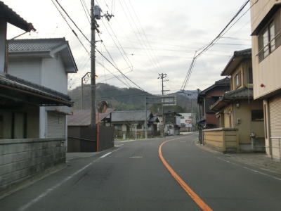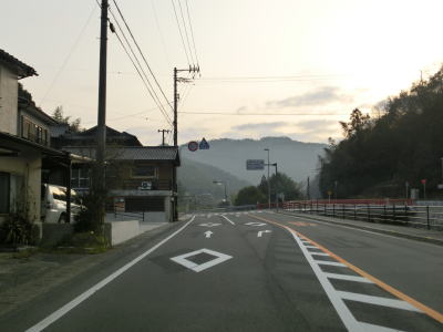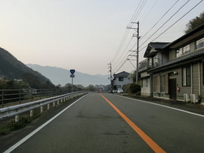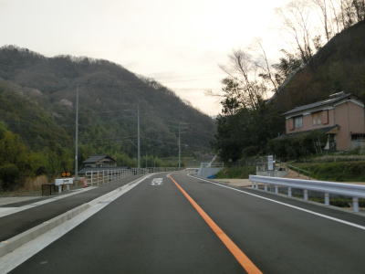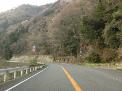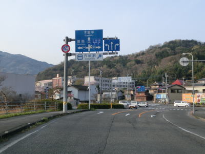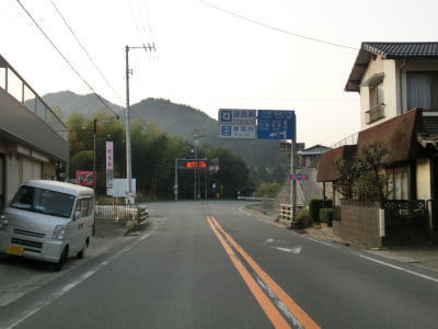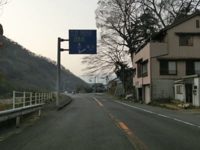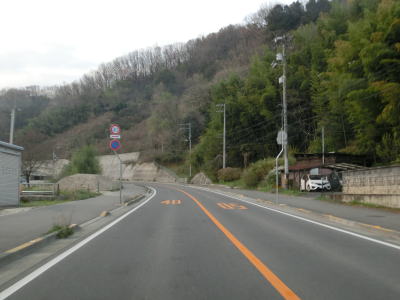 | 鮎滝交差点を通過した直後に左側車線が減少し、以降は対面2車線道路になる。緩やかな上り勾配は続いている。沿線には普通の家屋が主でローカル色が濃いが、昼間であればそれなりの交通量がある。 | ||