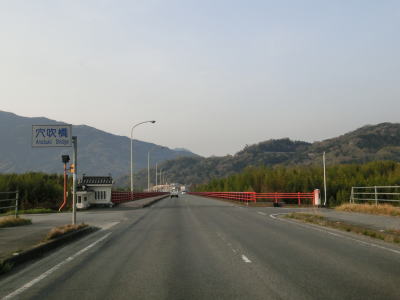 | 徳島r12バイパスとの交差点からすぐに吉野川に架かる穴吹橋を渡る。北詰の親柱(下流側のみ)はうだつを模したものとなっており、南詰の親柱も高い塔のような特徴的なものが設置されている。橋を渡り終えて右にカーブした直後にR192・R492穴吹橋交差点となり、左折して徳島方面へ進む。R192に重複すると同時に、R492が単独分岐する交差点である。 | ||